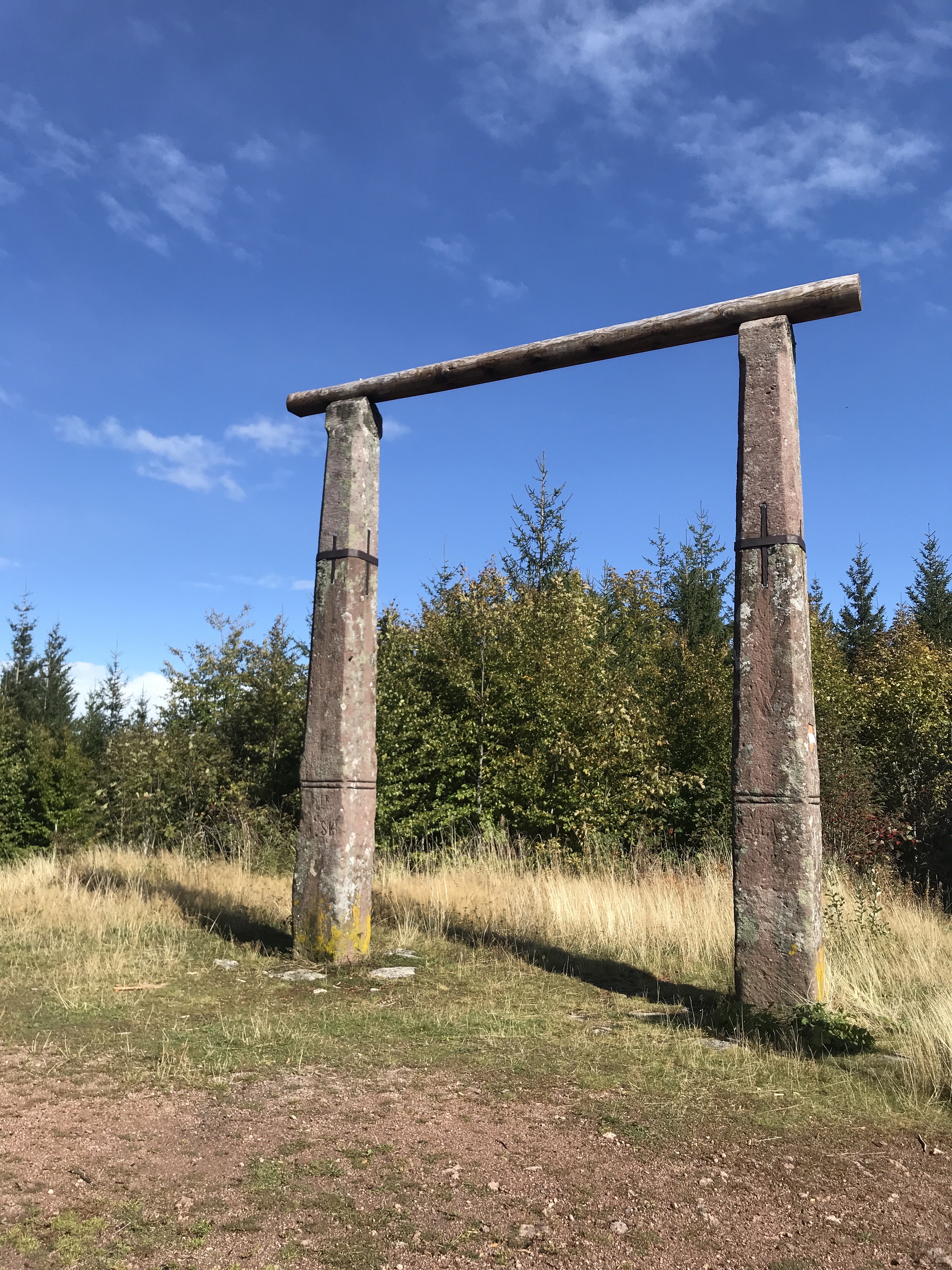 Shortly after, the rain stopped and the sky turned a clear blue, probably because of the high wind that was blowing. Not long after, I came across an ancient set of gallows on a ridge. They were built here because, on this high point, they could be seen from just about everywhere around and so acted as an efficient deterrent. The sign next to them said that the people who were hanged there were all buried nearby. More ghosts to haunt the Black Forest.