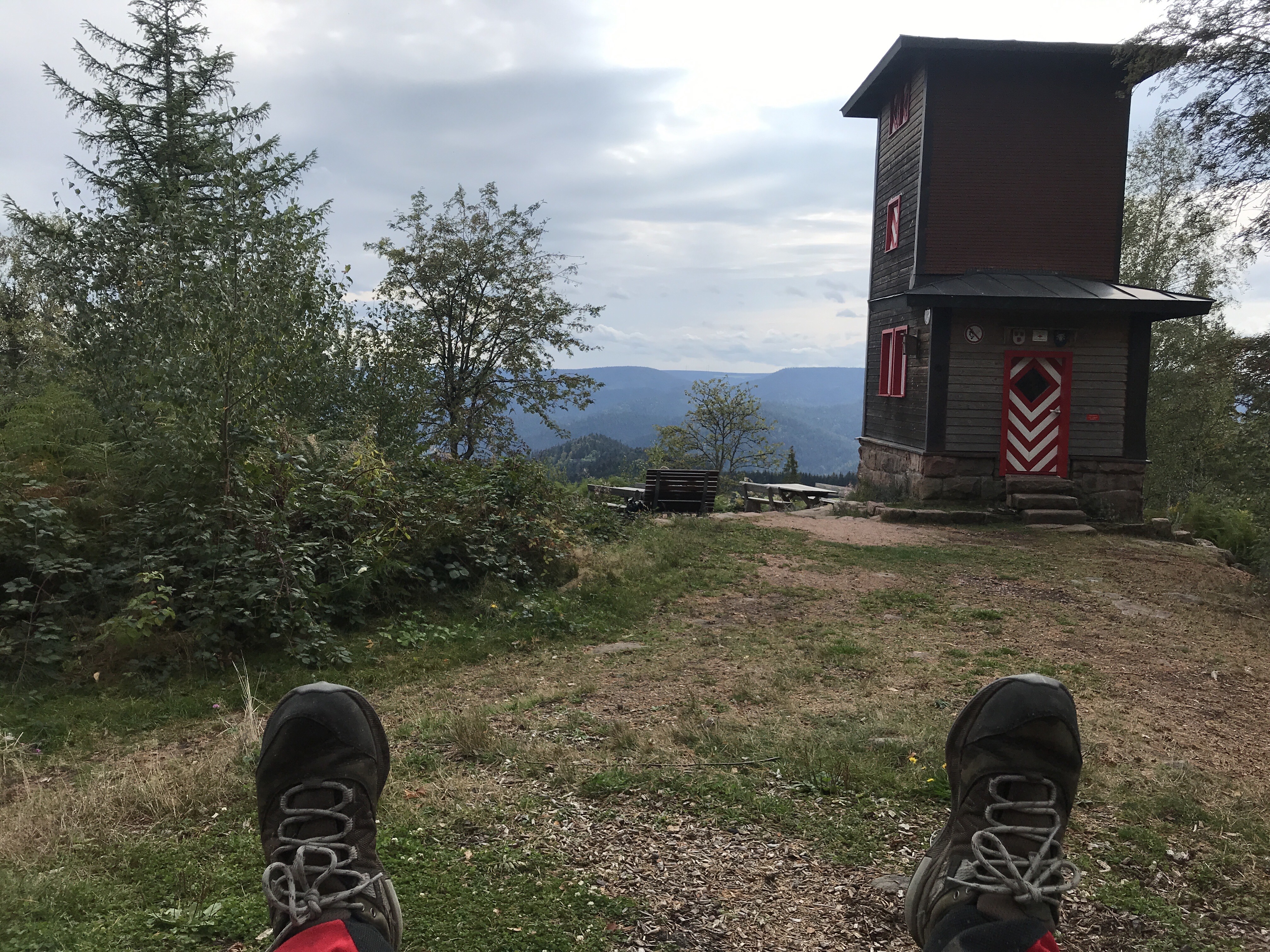 I made a longer stop at Teisenkopf to climb the viewing tower and to relax on one of the comfortable wooden recliners that you find all along the trails here. I stirred myself when I found myself dozing off there and set off on the steep descent to Schiltach.
