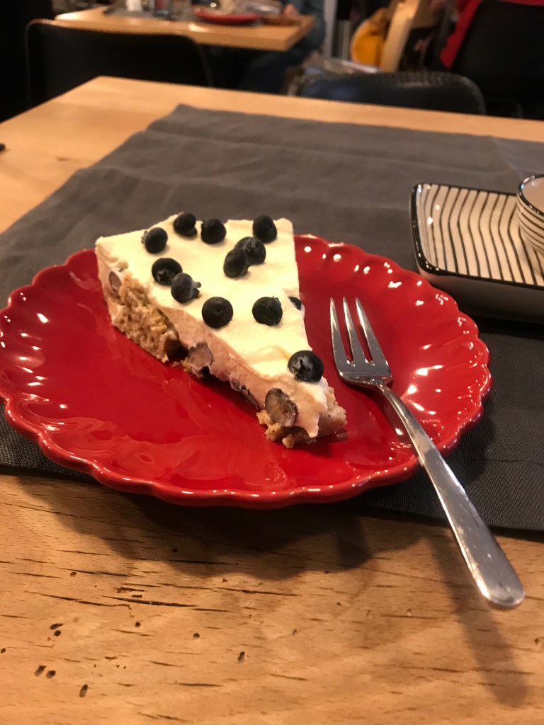 After the long descent from the Blauen, I was soaked and ready for a break. In the town centre, I found a cozy little café, Miss Gugelhupf, run by two lovely ladies who didn’t bat an eyelid at a soaked hiker. There was a nice, relaxed atmosphere in this place that was packed with all kinds of funky furnishings, books and (mostly) lady customers chatting and reading. After hanging up my wet gear in the entrance, I had a slice of a delicious blueberry cheesecake with some passionfruit and apple tea that warmed me up and gave me the energy for the last 6 or 7 km to cover that day.