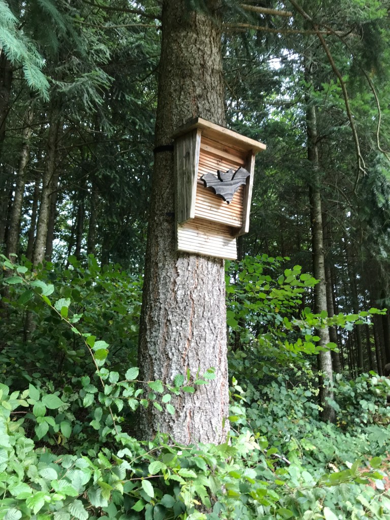 The climb out of Hausach was indeed steep, with fine views from the old fortress overlooking the town. There were some beautiful spots on the way up, with a blend of forestry trails and narrower, steeper paths from time to time. The walking poles were a great help again, giving me a steady rhythm as I climbed. The woods were thick but with occasional clearings that often provided some terrific views. At one point, I spotted a nesting box for bats that made a change from the many bird boxes along the way.