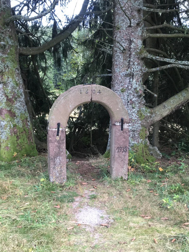 A little further on, I passed a spot where a huge farm or possibly an inn used to stand. An information board nearby said that it was dismantled after its owners emigrated in 1895. As far as I could tell, it had been rebuilt in another spot, but maybe I misinterpreted that part. In any case, the original arched doorway from 1604 was left on site. For some reason, the date 1933 was also inscribed on the doorway, but I was unable to figure out why as it seemed to have been dismantled before then. And there’s very little information on the Internet about the spot. With a little imagination, as so often in the Black Forest, it’s easy to conjure up all kinds of stories (especially given what was happening in Germany in 1933), but perhaps it was nothing more than a banal property deal.