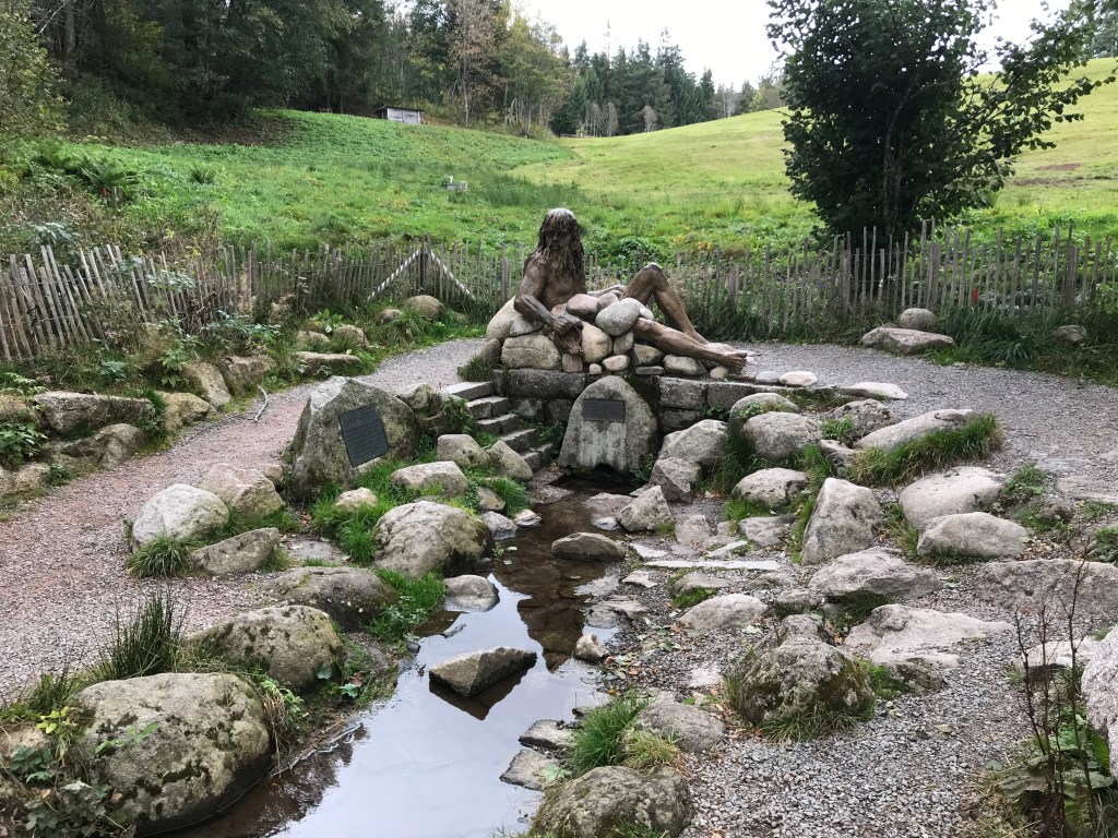 Just a short distance down the hill from the chapel lay the source of the Danube, which flows from this spot across Europe to the Black Sea. A week or two after this hike, I was going to be in Vienna and Bratislava and it would be hard to imagine that the mighty river in those two cities started off as a trickle of water emerging from these Black Forest hills. The path down to the source was lined with excellent information boards about the river and its journey. There was also a hotel and restaurant on the spot from which delicious aromas of cooking were coming, but it was a little too early for lunch so I carried on my way.