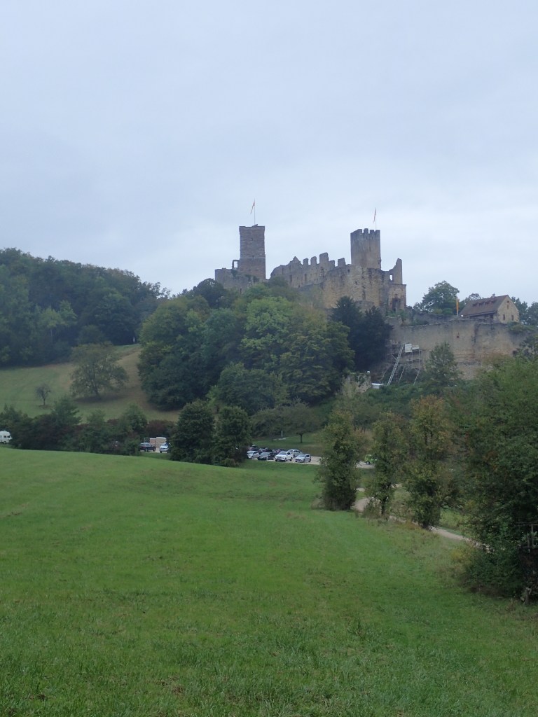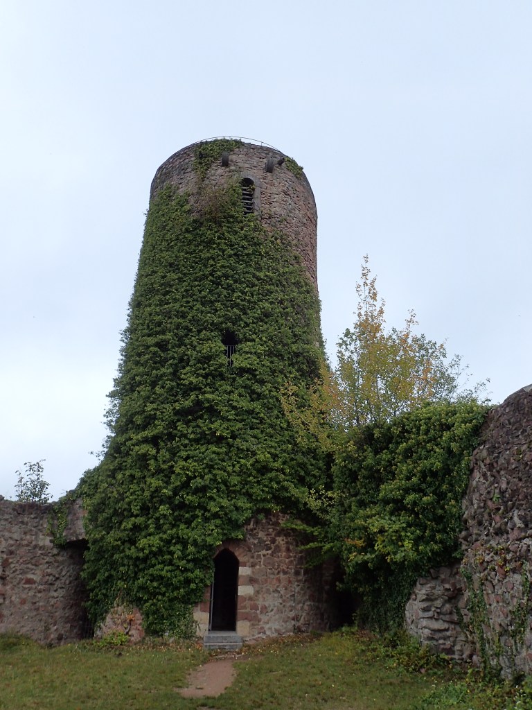 There was a steep climb out of Wollbach but, after so long on the trail, I didn’t find it that tough. There were quite a few people around on this Sunday morning, getting a walk in before the rain forecast for 11 o’clock. The walking was very pleasant on the first section, in woods with lots of squirrel activity all the way to the huge castle in Rötteln.