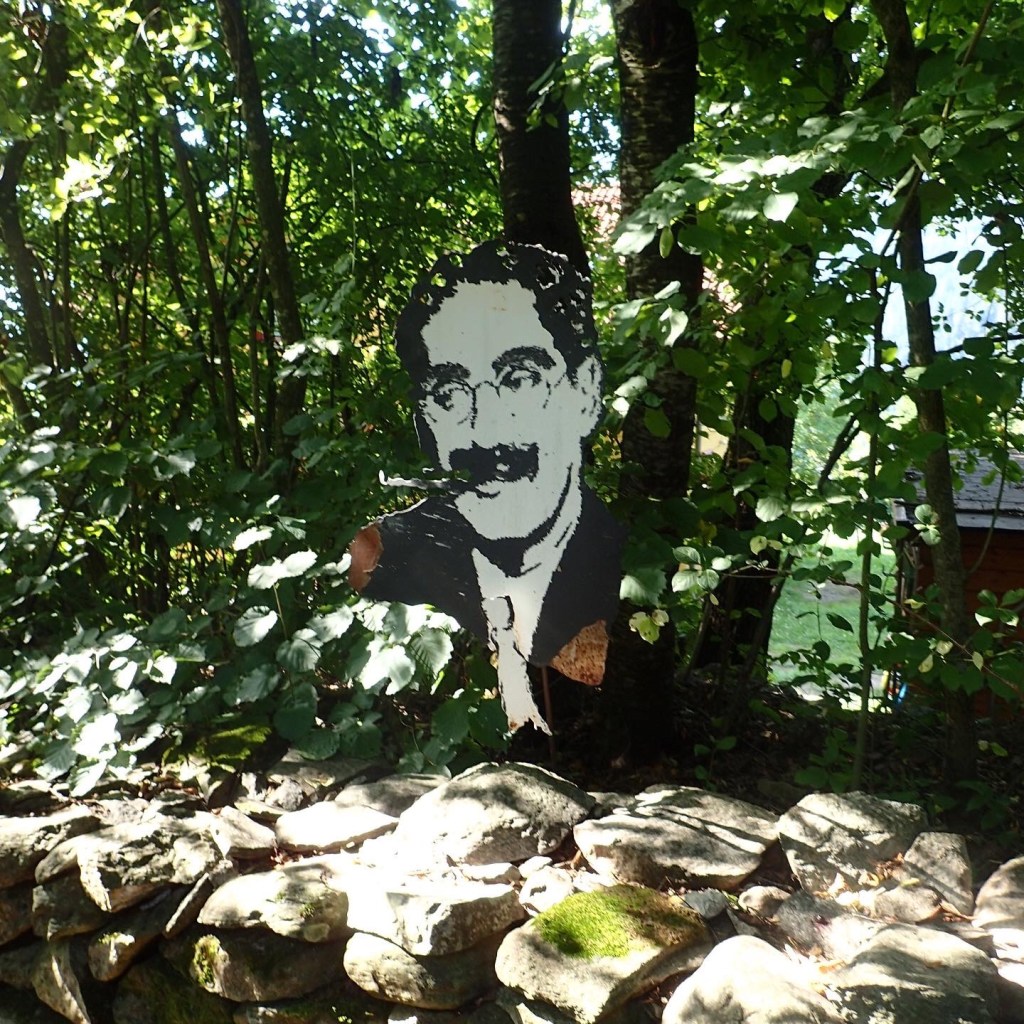 We began by descending the Danielsberg, something that was much easier than the previous day’s climb. Just before the first village, we followed a path alongside a garden which was decorated with portraits of 20th century cultural icons such as Charlie Chaplin, John Lennon, Jim Morrison, Groucho Marx , etc. We had already noticed in many Austrian villages that people tend to put a lot of work into their gardens but this was the best one we had seen so far.