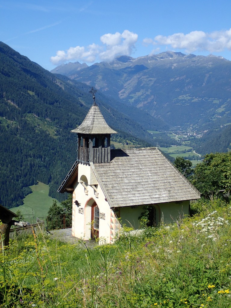 Shortly after, there was a huge old wooden house perched high above the valley. It was a beautiful place, but clearly abandoned. And, as we had often seen along the way, it had its own private chapel. No doubt the isolation of these alpine farms made it impossible to get to mass on Sunday, so each one built its own private chapel that, along with the numerous wayside shrines, meant that the locals were never too far from God. Religion continues to play a big role in the locals’ lives as the shrines, mostly crosses, are perfectly maintained and nearly always decorated with fresh flowers and votive candles, which have their own section in the local supermarkets.