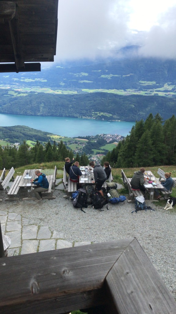 We soon passed Millstätter Hütte, which looked like another fun place to stay, and began the steep climb up to the summit of the Kamplnock at 2101 m. At the top, we got talking to two Austrian ladies who had also been at the Alexanderhütte. They had seemed a little distant at first but became friendlier as we went along. They were both very fit hikers and soon left us behind. That said, they had much lighter packs.