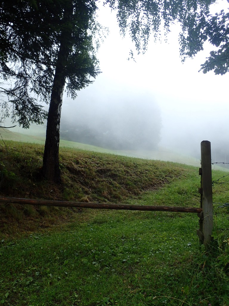 At Tangerner Alm, because of the cloud wreathing the summits that the trail passed over and the threat of rain, we opted for a shortcut across the Alpine pastures as it didn’t seem to make sense to climb up if we weren’t going to see anything,