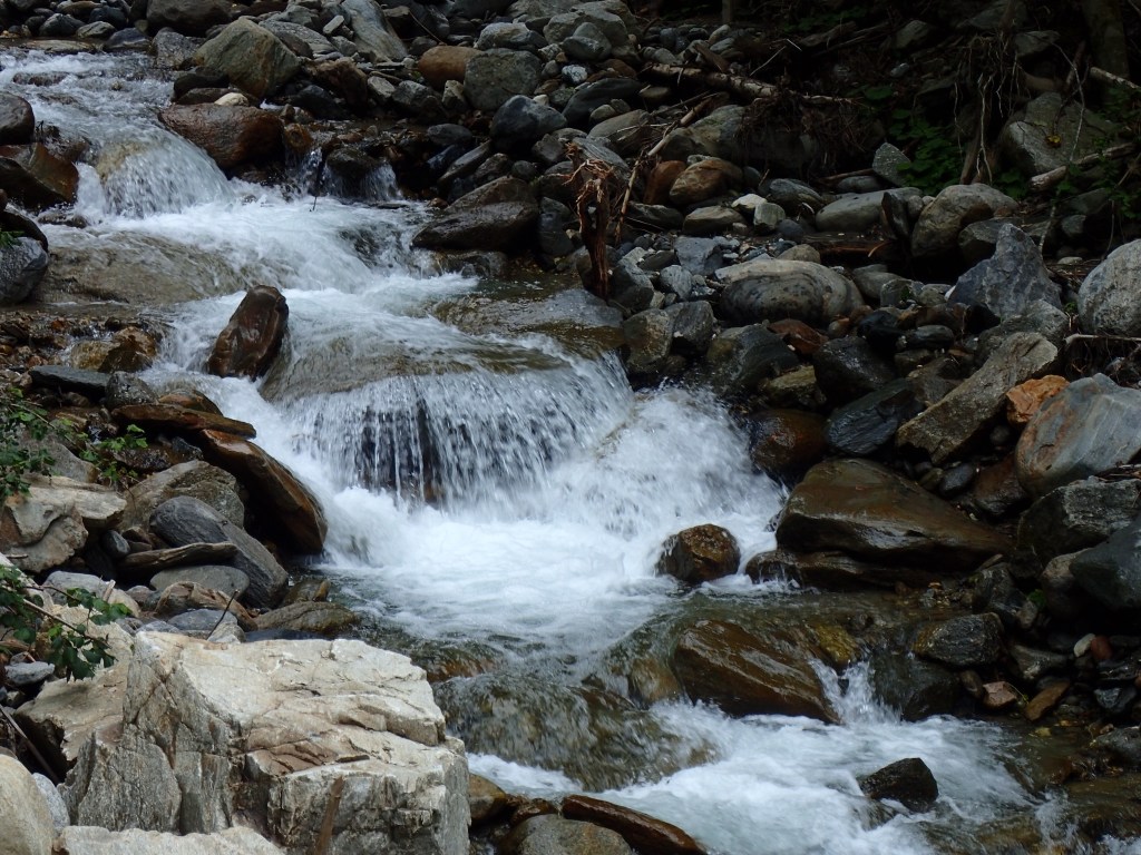 Everything seemed fine at first as we headed out of the village, uphill along the main road before turning onto a country lane passing numerous farms and orchards. We quickly found ourselves at the Turkhaus Museum at the entrance to the Langalmtal, a beautiful wooded valley lined with old watermills and great picnic areas for families. It was a delight to be walking in this valley with its countless waterfalls and steadily rising path. However, after a while, the trail came to a sudden end. We tried to advance on either side of the valley, but a landslide had clearly blocked the trail from that point on. We ran into Birgit again and warned her that it wasn’t possible to go further, but she wanted to follow what her guidebook said and see for herself.