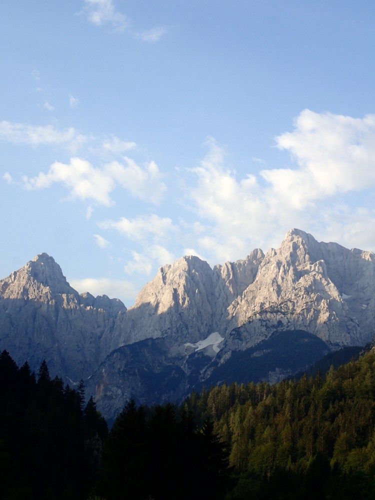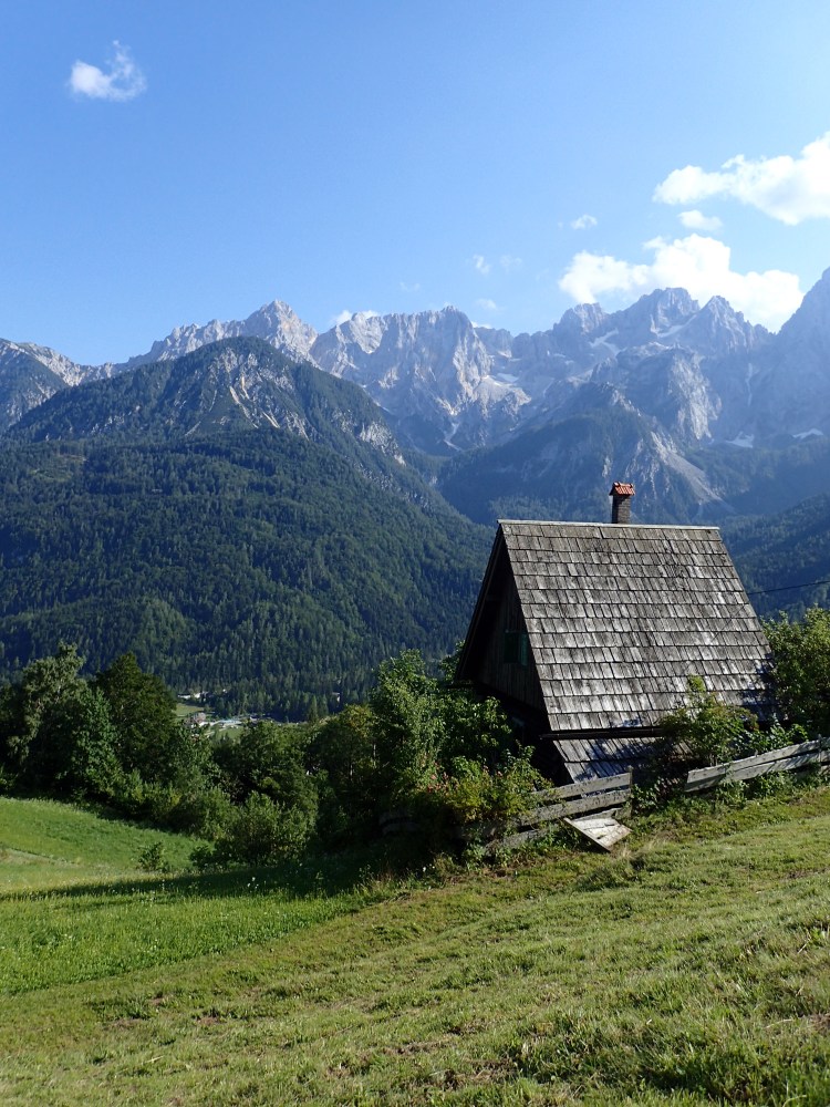 In our Kompass guide to the Alpe-Adria, which used various colour codes to indicate the difficulty of each day’s hike, the stage from Baumgartner Höhe to Kranjska Gora was the only one marked in black, the toughest category. With an ascent of 1380 metres and a descent of 1470, it indeed turned out to be the hardest day on the whole trail. But the difficulty was offset by some of the most spectacular scenery since the Grossglockner glacier.