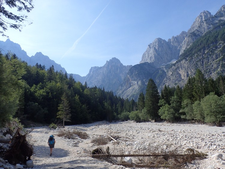 That said, the day began easily enough with a gentle walk out of Kranjska Gora to Lake Jasna at the end of the town before a gradual and steady ascent along the Velika Piscnica valley with the towering, rocky peaks ahead of us all the way. It was a very pleasant section of trail and easy to follow, which was a good job as we had seen very few Alpe-Adria signs since leaving Kranjska Gora.
