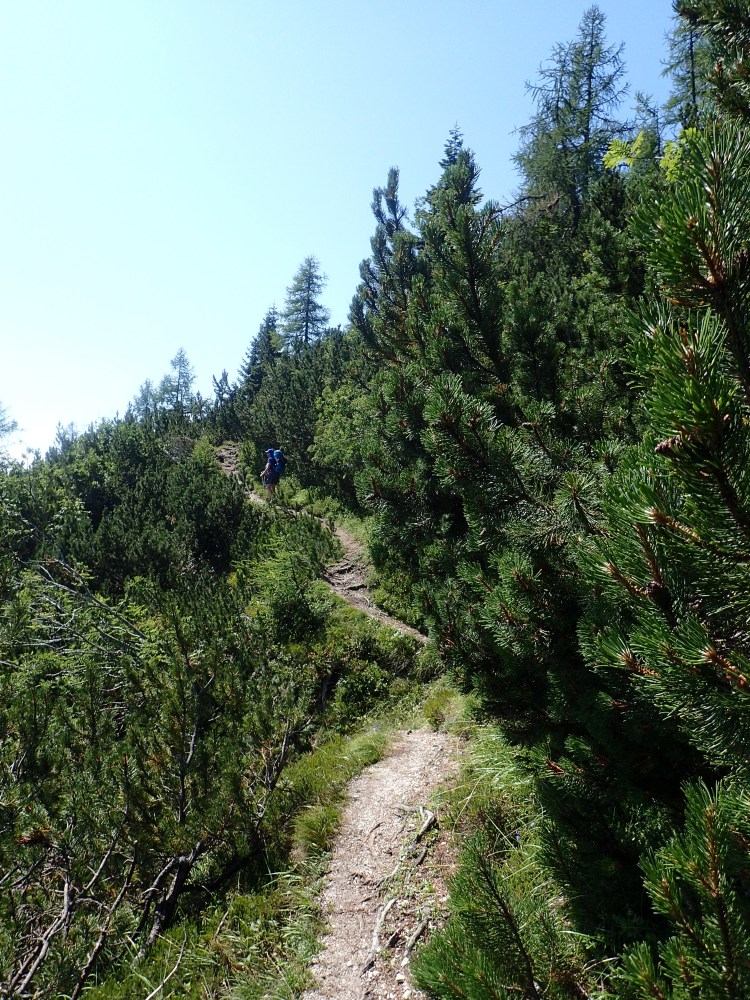 After a while, the trail took a sharp right turn to head up to the Vrsic Pass and that was when things began to get tricky. After another pleasant section across some meadows, we headed into the woods and the markings more or less vanished. Fortunately, the trail was still clear at this point and we had no real problems making it as far as the Russian Chapel.