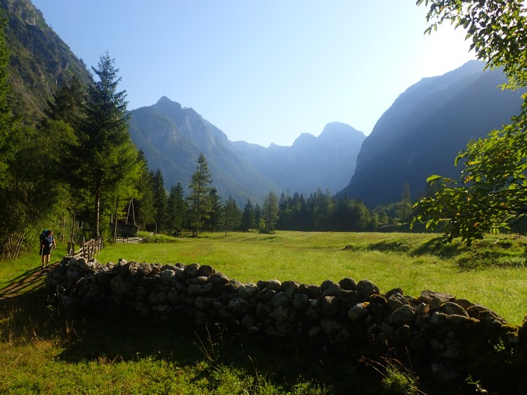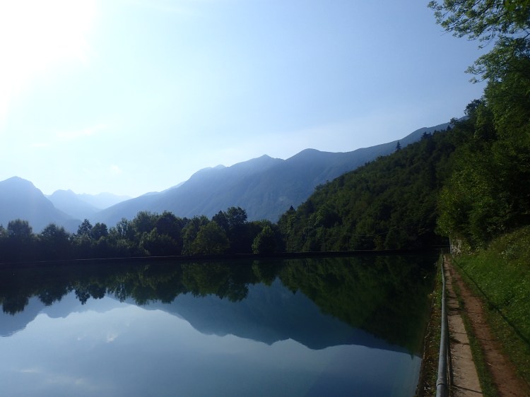After climbing back up to the trail, we carried on our way, passing an odd little reservoir in the middle of nowhere that seemed to capture water from local springs before channelling it down to the Soča. It provided a great setting for photos of the surrounding mountains.