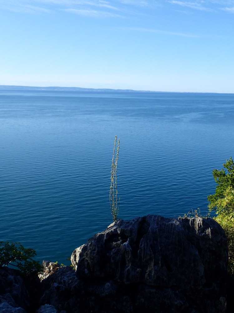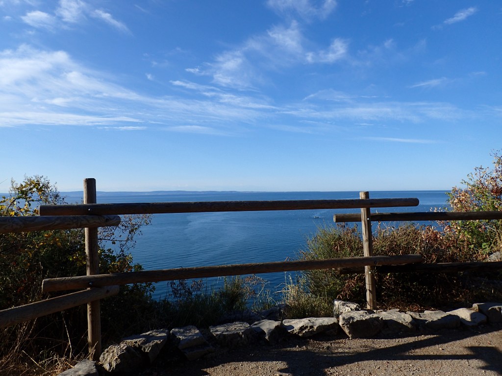 It was another glorious day, with the Bora blowing and keeping the temperature to a very pleasant level for hiking. There were just a few clouds in the sky and the views from the path were spectacular, forming a stark contrast with the industrial complex of Monfalcone the previous day.