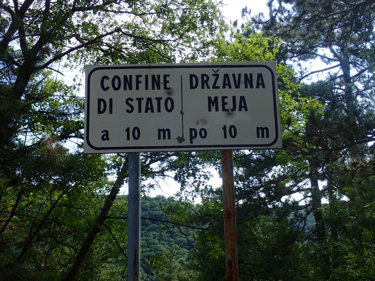 However, the trail wouldn’t stay in Italy for long as, shortly after leaving our rest stop and losing our way for a few hundred metres in the hills because of the poor trail markings, we descended to a broad track that was perhaps a train line in the past (there were a number of tunnels), but that was now part of the Alpe-Adria cycle path. This track ran along the border, in and out of Slovenia, often for just a few metres.