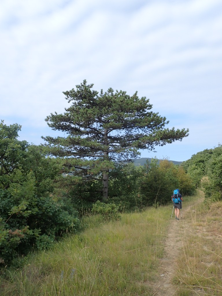 We stopped for a coffee at Sistiana where the trail left the coast to head inland. From this point on, we would be adapting the trail to avoid semi-urbanized areas and to stick to the woods as much as possible. The official trail headed far inland, taking in a number of towns and villages, but we turned off it after the village of Slivia to cross a section of wild meadows and Mediterranean oaks to Aurisina. By doing this, we found a more pleasant route and knocked about 5 kilometres off the day’s total. After Aurisina, we entered some beautiful woods, following an easy trail that led us to Santa Croce, where we had an excellent seafood antipasti and pasta lunch at La Lampara, a restaurant specialized in fish dishes. As we were about halfway through the day’s walking by that point, it was an ideal place to stop.