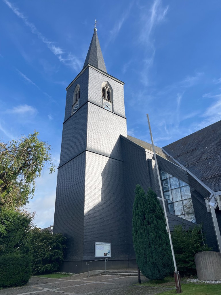 From the reservoir, the trail headed steeply uphill to the village of Höfen, gateway to the Eifel National Park with a visitors’ centre that was unfortunately closed on Wednesdays. There was not a lot to see in the village, except for the church, which was entirely covered with slate on the outside, like some of the buildings in Monschau