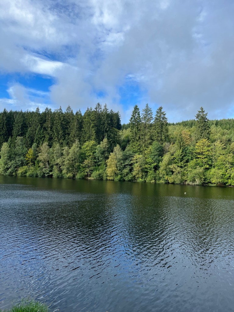 After leaving Monschau, the trail soon reached the Perlenbachtal reservoir whose banks it followed for a couple of kilometers. As I went along, I thought to myself that maybe I was doing this trail a few weeks too early. All the deciduous trees that make up a large part of the forest were still green. No doubt a couple of weeks later, they would be a riot of colour.
