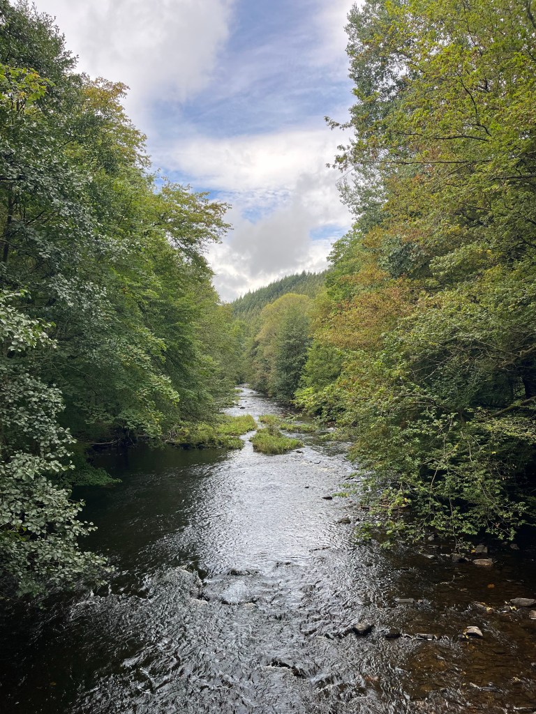 It was pretty easy going, even though, from time to time, there was a terrifically steep climb to do. I would be close to the river and then, all of a sudden, the trail would lead steeply uphill to follow it from a height before descending to the water again. It was continually interesting, with great views now and then, an old sawmill at one point, a bridge that provided a fine view of the river and the sound of water as a permanent accompaniment.