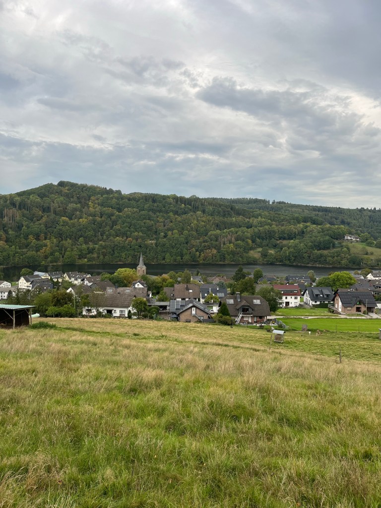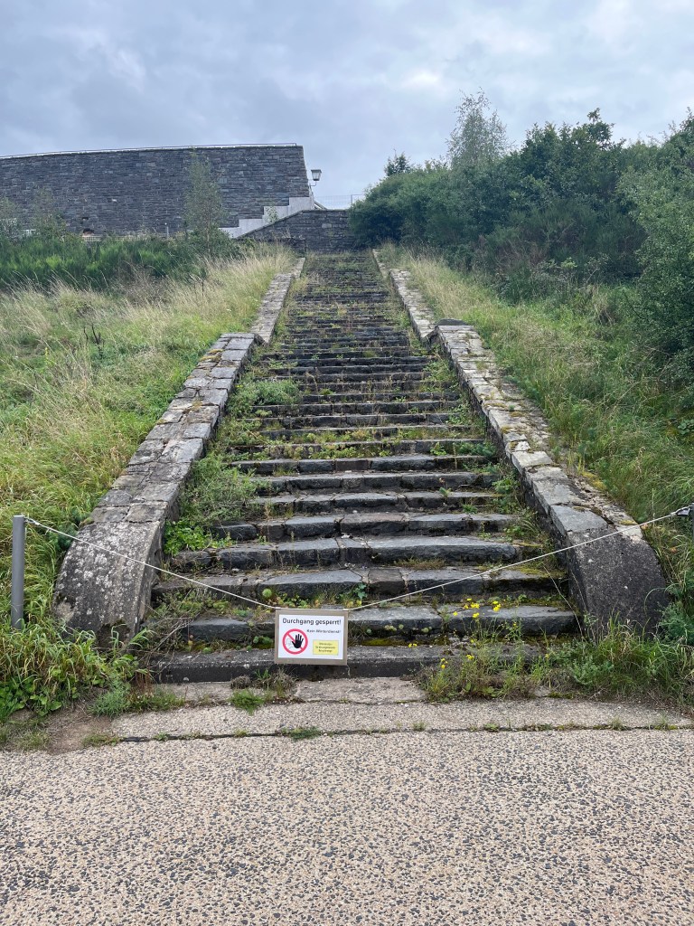 It had a wonderful view of the Rur lake that was cut at this point by a dam behind which there was very little water. Rather than the effect of a drought, I suspect it had been deliberately drained as renovation work was underway on the dam wall.
