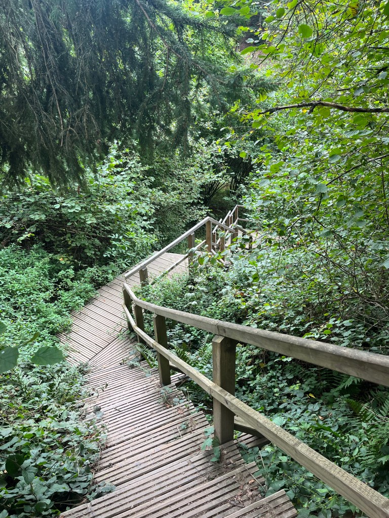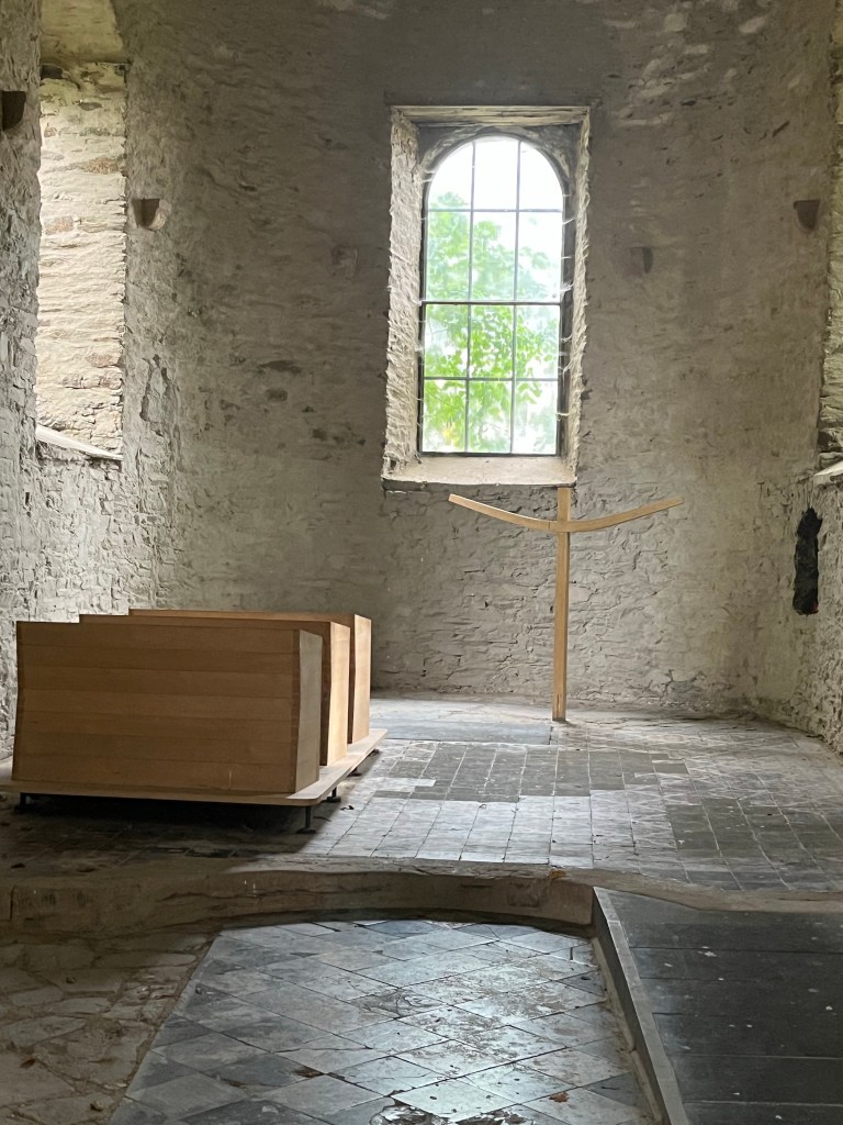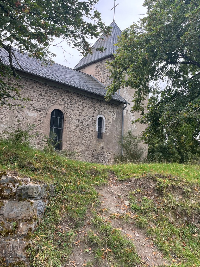 The trail across the moor led to Wollseifen, a fairly eerie place. On logging onto Wikipedia, I discovered that the villagers had been evicted after the war, and the village used for target practice by the Belgian and British armies that had taken over Vogelsang after Germany’s defeat. On the site, there was a model of the village in 1944, and it was quite a sizeable place. All that remains now is the old church, which had clearly taken a battering, and some modern looking apartment blocks that were obviously placed there as targets.