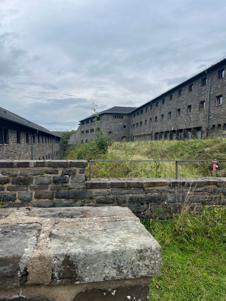 From Wollseifen, the trail led across moors and through forests to Vogelsang. The trail skirted the place, but I added an extra kilometre or two to the day by going in to take a look around. The complex was originally built as a training centre for the Nazi elite. Following the war, it was taken over by the British army, which then shared the place with the Belgians and other NATO forces until 2005. Since 2006, it has become a museum and part of the complex, in a neat twist of fate, is now used to house refugees.