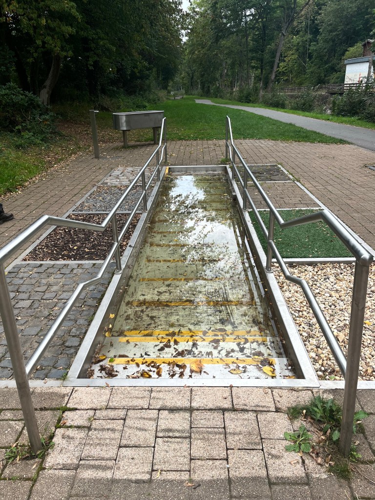The trail brought me into town just next to the park, where there was finally a Kneipp bath.