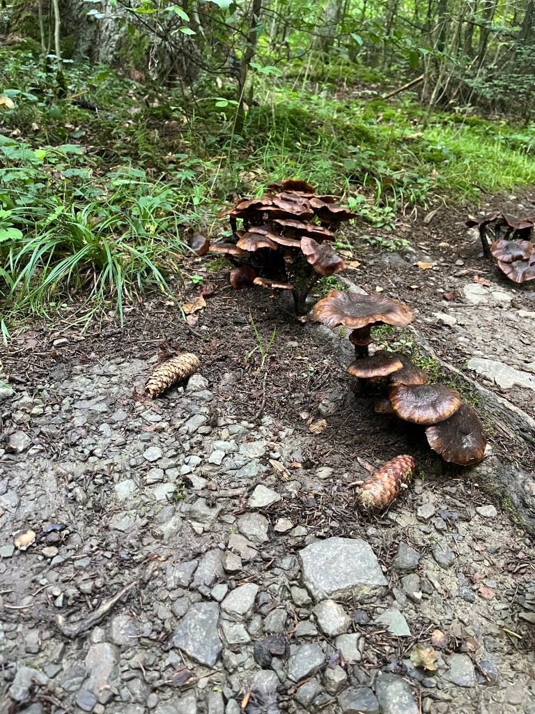Once again, the trail was part in the woods, part in farmland. The damp conditions in the woods, along with the rain from a couple of days ago, meant that there were toadstools and mushrooms sprouting all over.
