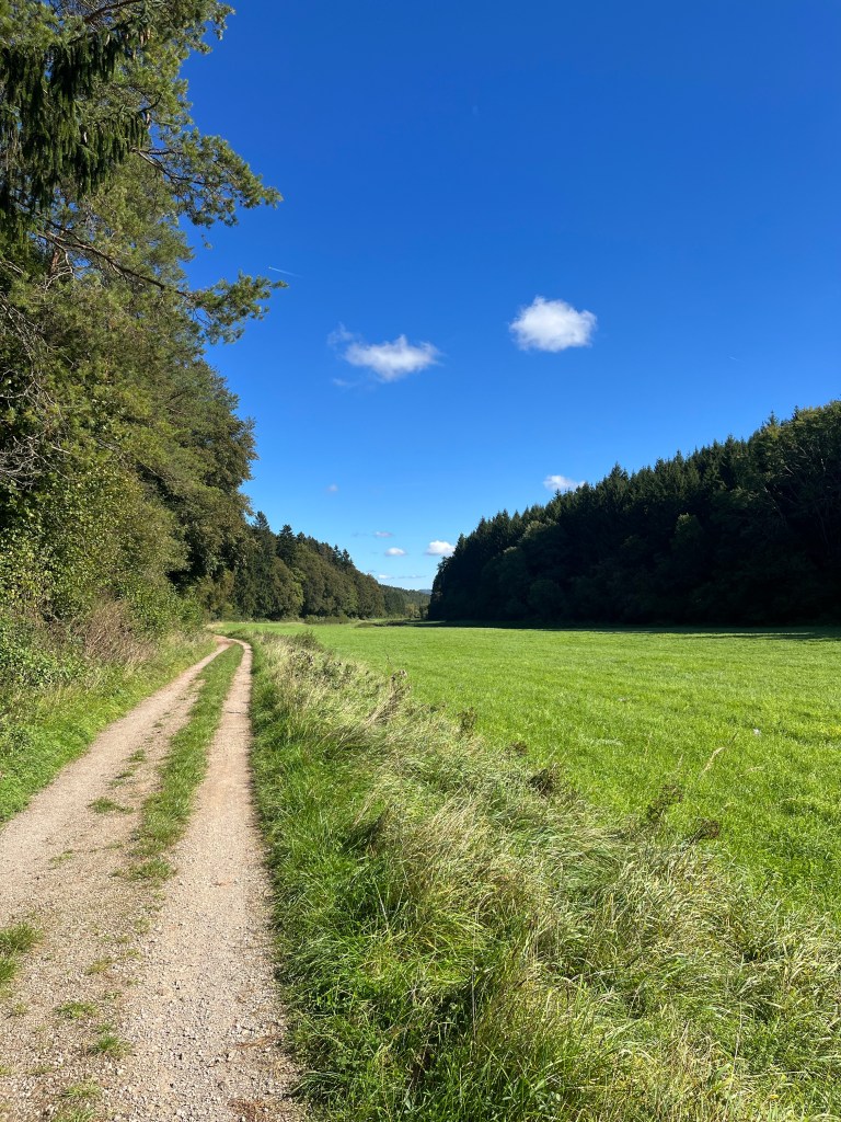 Then there was was a steep climb downhill before the trail began to follow a beautiful valley that would end up leading all the way to Mirbach. It was sunny, not too hot, the sky was blue with a few wisps of cloud, and the birds were singing. Ideal conditions.