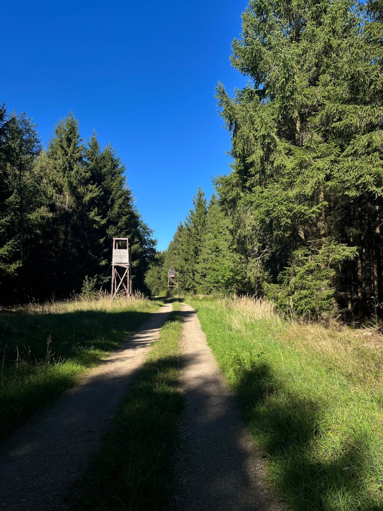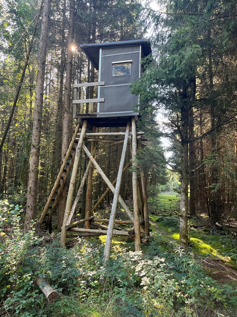 The route prepared by Komoot at first followed the Eifelsteig, but then veered off to cross some beautiful woods for a distance of about 8 km. There was no one else around, and the only sounds were my footsteps and the singing of the birds. I really enjoyed this section that I would never have seen if I hadn’t needed to leave the trail to get to Hillesheim and my hotel. There were some very impressive hunters’ hides along the way but thankfully they were not in use today. Indeed, on my way through these woods, I saw only one other person.