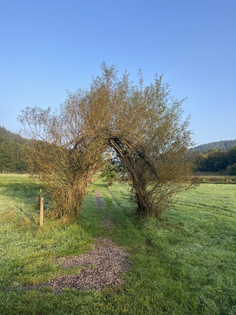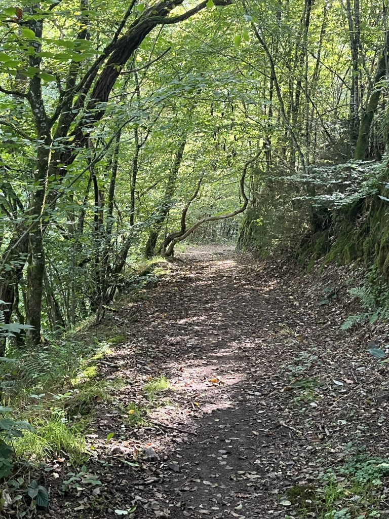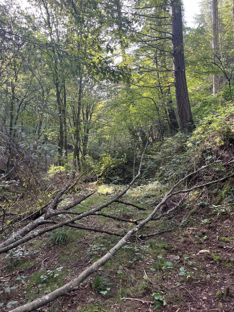 Komoot quickly came up with an itinerary that began pleasantly enough with a hike up out of the village before turning onto a forest path. However, the track that I followed proved to be quite overgrown in places. It was also a clearly an area where wild boar were extremely active as the ground had been turned over in many places as they searched for roots. The hunters must have been around too because from time to time the air was filled with the stench of rotting game carcasses butchered on site. I shall definitely not take this same route tomorrow to return to Bruch.