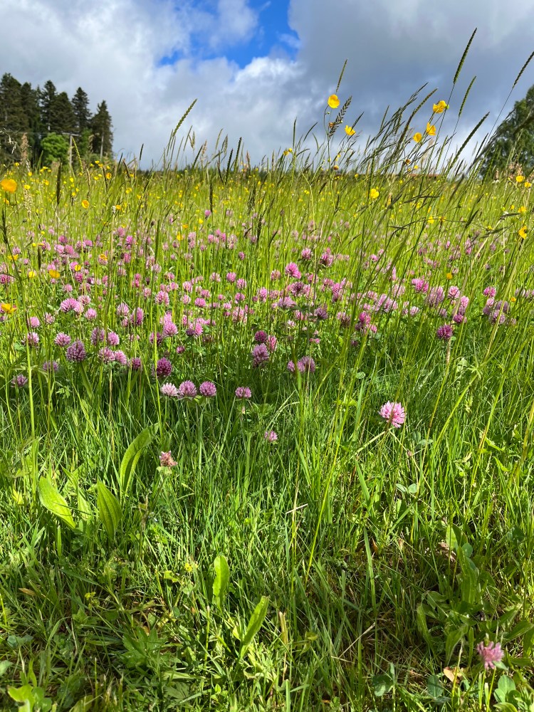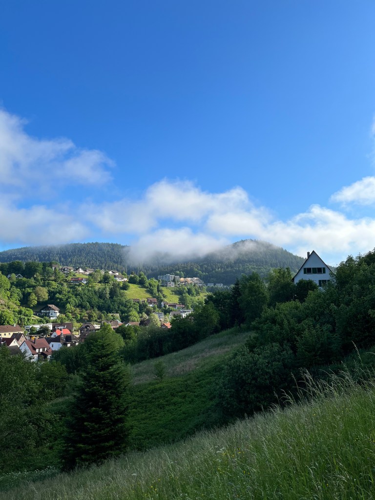 After the initial climb out of Freudenstadt, the rest of the day unfolded between woods and meadows at an altitude of between 800 and 750 metres (before the descent to Alpirsbach). And, an hour and a half after leaving the Kienberg park, the rain had moved on and blue skies had returned.