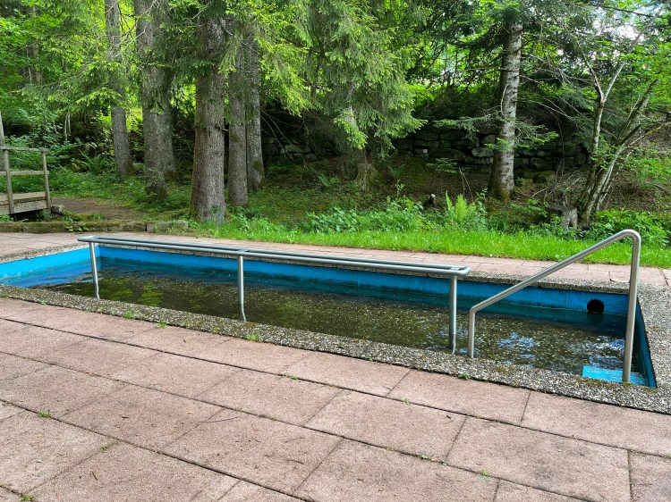 Shortly after, there was the treat of discovering a Kneipp bath that wasn’t mentioned in the Rother guide. It was about a hundred metres off the trail and I found it thanks to a highlight on the Komoot app (my favourite hiking app with AllTrails). I stopped to give my feet a good soak before setting off again through the woods to the pretty village of Schömberg.