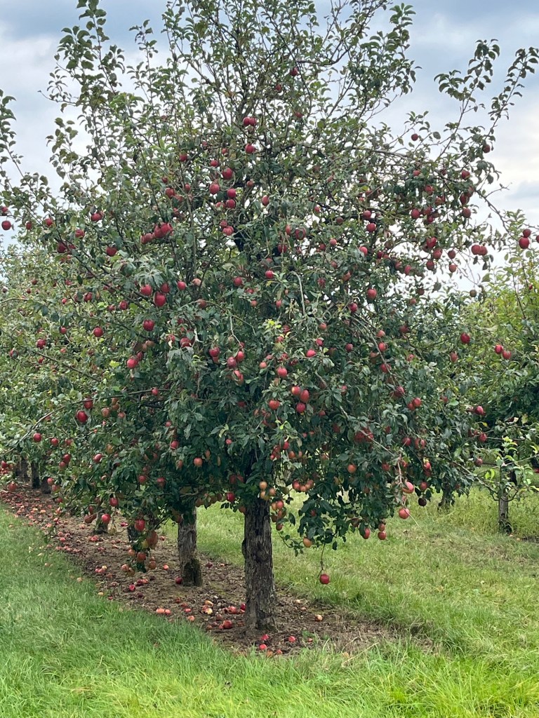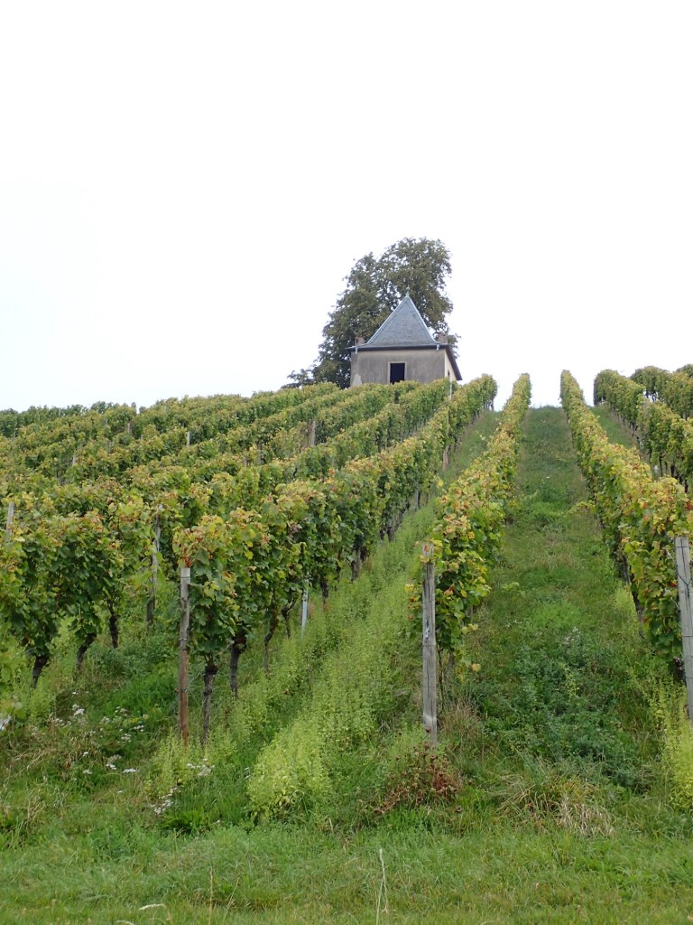 There were also a lot of apple trees, all heavy with fruit, and a sign by the trail at one point seem to be saying that the local farmers always kept a few fruit trees on the land where cattle grazed. There were also plenty of more formal orchards. I helped myself to a couple of apples which were absolutely delicious. And just before Schloss Thorn, I got talking to a local farmer and wine grower who had spent the afternoon collecting fallen apples that he told me he would take back to his farm, clean, and turn into apple juice. All that while waiting for his grapes to be ready to harvest in a couple of weeks.