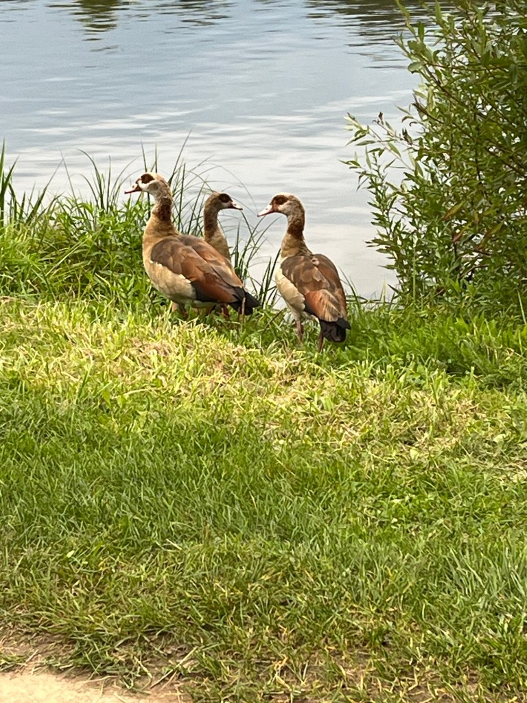 As I walked back along the river, I encountered a flock of Egyptian geese, truly beautiful birds with very distinctive plumage.
