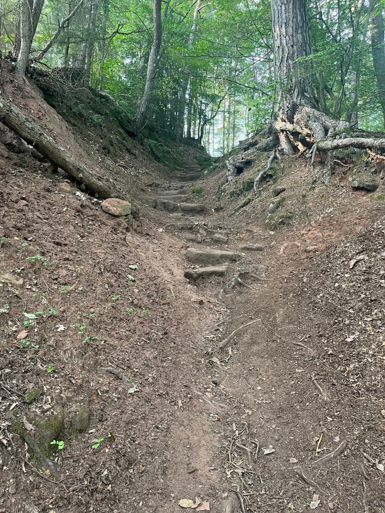 As I set off along the trail, I quickly began to realize that my memories of the clifftop walk had been darkened by the pain and exhaustion of that day. It was in fact a wonderful section of trail, closely following the edge of the cliffs with terrific views back to Trier and over the river below. True, there were a couple of steep sections that were probably hell a year before but that were nothing to write home about this time. But that still left the Biewer mudslide.