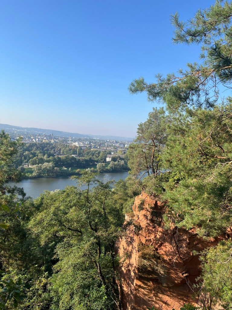 As I crossed back over the Moselle to reach the start of the trail, I had a great view of the sandstone cliffs above the river that the. Moselsteig would be following and where I had suffered so much one year before.