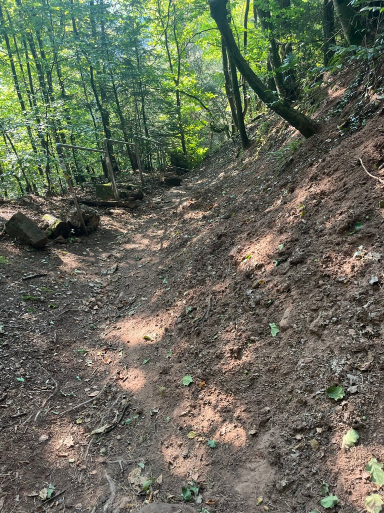 And so to Biewer and its mudslide. To my pleasant surprise, things had changed a lot in a year. Steps had now been set into the steep slope and handrails had been put in place. It was still a steep climb up out of the village, but a lot easier than with just a frayed rope for help.
