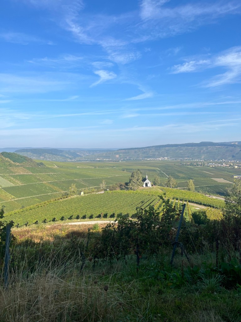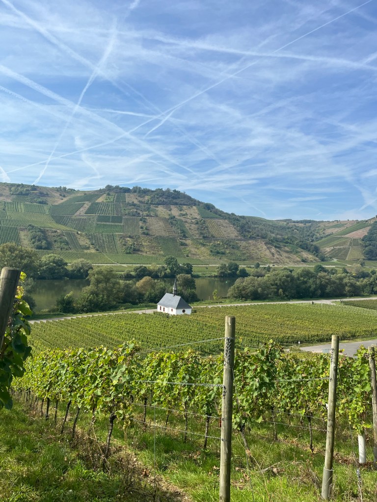 After the two guys vacated the bench, I took another rest as it was still way too early to arrive at my accommodation. All that was left to do was the gradual descent back down to the valley through the vineyards (spotting two deer along the way), a descent that ended at the Märtyrer Chapel just outside Neumagen-Dhron.