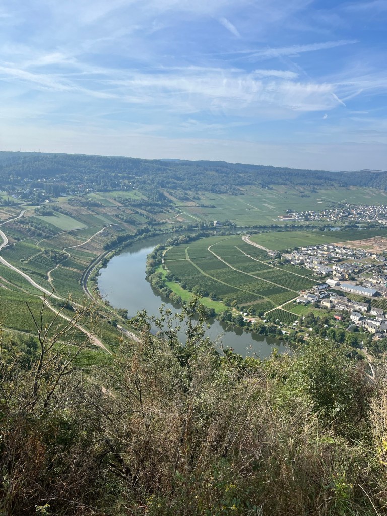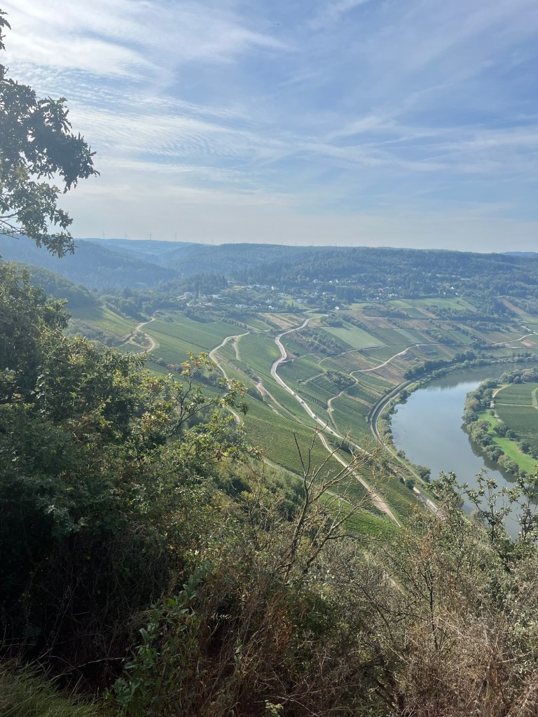The trail then descended to what was supposedly the most beautiful view of the Moselle vineyards, according to a popular vote. Above all, there was a huge car park with crowds of people taking selfies and pictures of the valley. Quite frankly, the view wasn’t anything special after the one from the tower the day before and, a couple of kilometres further on, at a spot called Vogelsang, there was so much better view. But it obviously didn’t get the popular vote as it was impossible to reach by car.