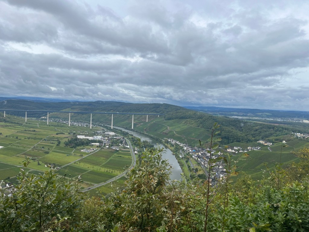 The day’s trail was fairly undulating, but with no steep ascents or descents for once. Even so, it was the usual start on this trail with a climb up from the hotel to reach higher ground at the Burgberg with a great view back over Ürzig and the Hochmoselbrücke in its entirety.