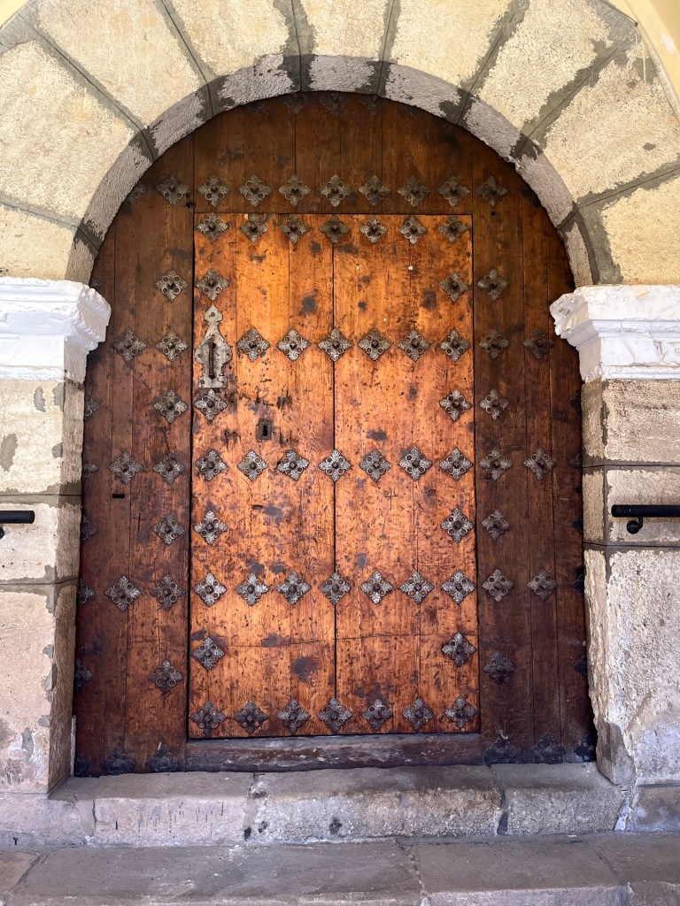 When I woke, feeling very refreshed, it was around 5 pm and I decided to go out and explore. That didn’t really pass much time as the walk around Griegos only took about 20 minutes. But I discovered a pretty little place, set at an altitude of 1 600 metres, that seemed to have more life than other villages along the trail (Tramacastiel or Jabaloyas, say) as there was a school and even a sports centre where the local kids were playing a game of soccer. I’d seen quite a few families with children when school had ended for the day just before my nap, so there was life here. The houses were well-maintained and some were being renovated. A number of them had a bright-blue surround at their windows, perhaps to dissuade flies from entering, that lent a cheerful air to the place. Even so, I never found the advertised supermarket and the only viable business seemed to be my hotel with its bar and restaurant (along with the pilgrim’s hostel at the village entrance). That said, of all the villages passed through up to this point, Griegos was the one that charmed me the most. The high-altitude setting, the well- maintained houses and the friendliness of everyone I passed on its streets created a very pleasant atmosphere indeed.