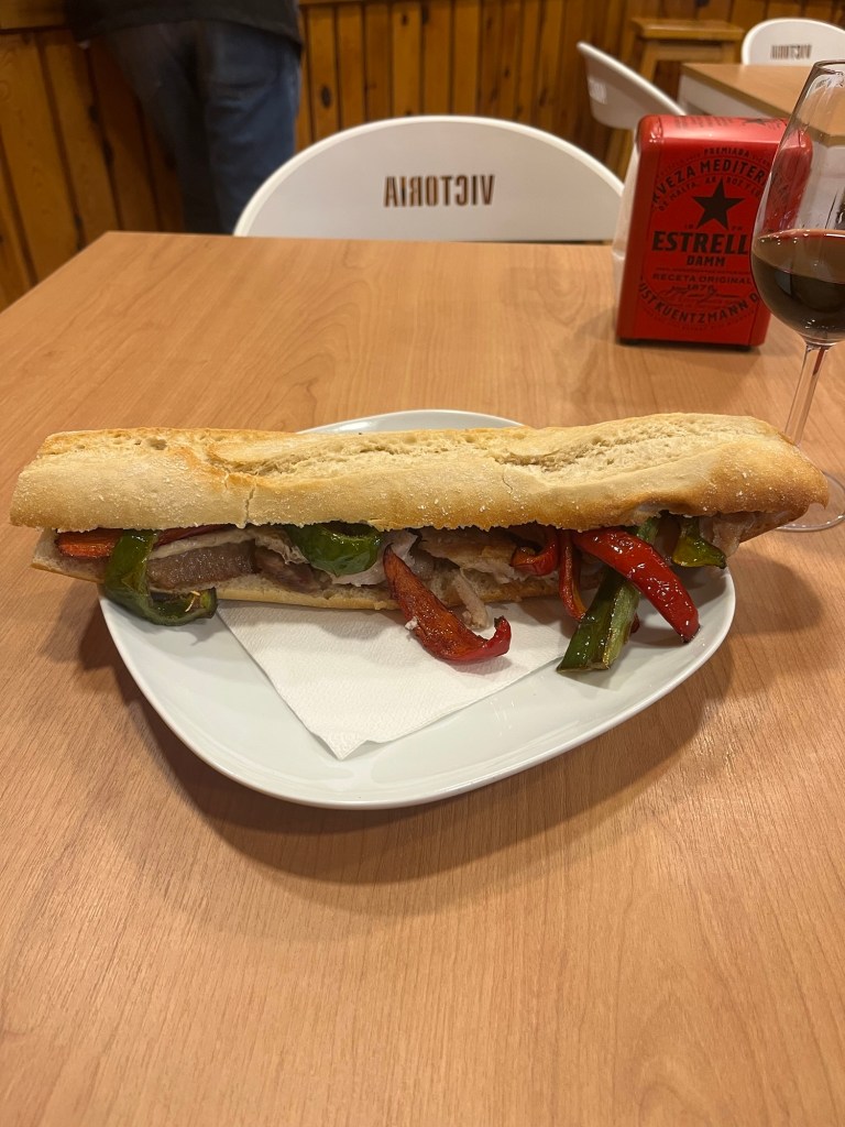 Dinner was a simpler affair than lunch. The owner offered a range of tapas and/or sandwiches in the bar rather than in the dining room. There were quite a few friendly locals there, some having just a beer, others sharing tapas, and the atmosphere was warm and welcoming. I opted for a sandwich (a boccadillo) with pork loin and sauteed peppers that turned out to be one of the best sandwiches I have ever eaten in my life. Washed down with a glass of red wine, it was the perfect end to another perfect day.