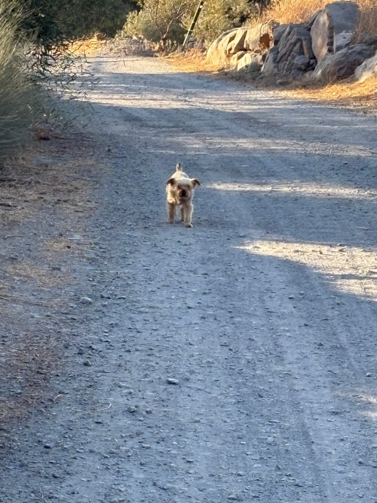 The trail crosses a main road, then begins its steep descent to the valley bottom. Along the way we spot papaya, avocado, mango and pomegranate trees all heavy with fruit, but always behind fences. There are so many, I’m sure the owners wouldn’t miss a few, but they remain beyond reach.