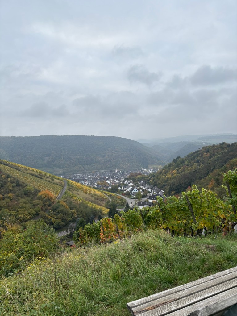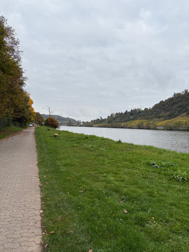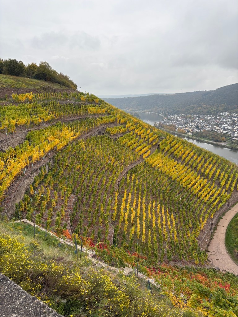 I set off just after 9 o’clock, beginning the day with a steep but pleasant climb up out of Winningen through the vineyards. It’s cloudy again, but there is no rain forecast and it’s not too chilly.