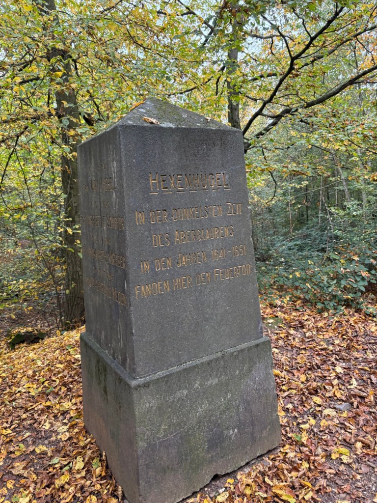 After crossing the road, the trail heads gently uphill again, towards the Winingen-Koblenz “airport” (more like an airfield). Just before following the side of the runway, the trail passes a monument to the witches of Winningen. As I mentioned yesterday, the village has a statue of a witch on the main square, albeit a very “Halloween” image of one, complete with broomstick and pointy hat, which whitewashes the horrific events that happened here. The monument names a total of 21 people, women and men, who were executed on this very spot between 1641 and 1651 for witchcraft. Mark Baines, a fellow hiker who passed here a few days ago, has sent me a link to an excellent web article that explains the whole story, told by a descendant of one of the witches. As with the execution site I came across on the Black Forest Ostweg in Calw a few years ago, this one is some way out of the village and on top of a hill, meaning the condemned had to be dragged up here for their punishment (and, possibly, to keep the village free of their supposed “maleficence”). It’s a chilling spot, despite being set in the heart of these beautiful woods, and I can’t help thinking of the poor souls who perished here through the sheer ignorance and jealousy of their peers.